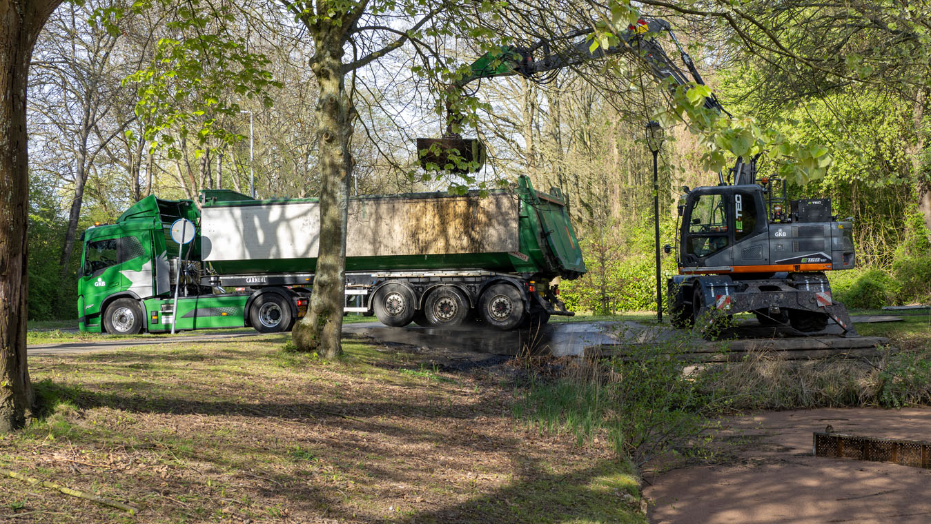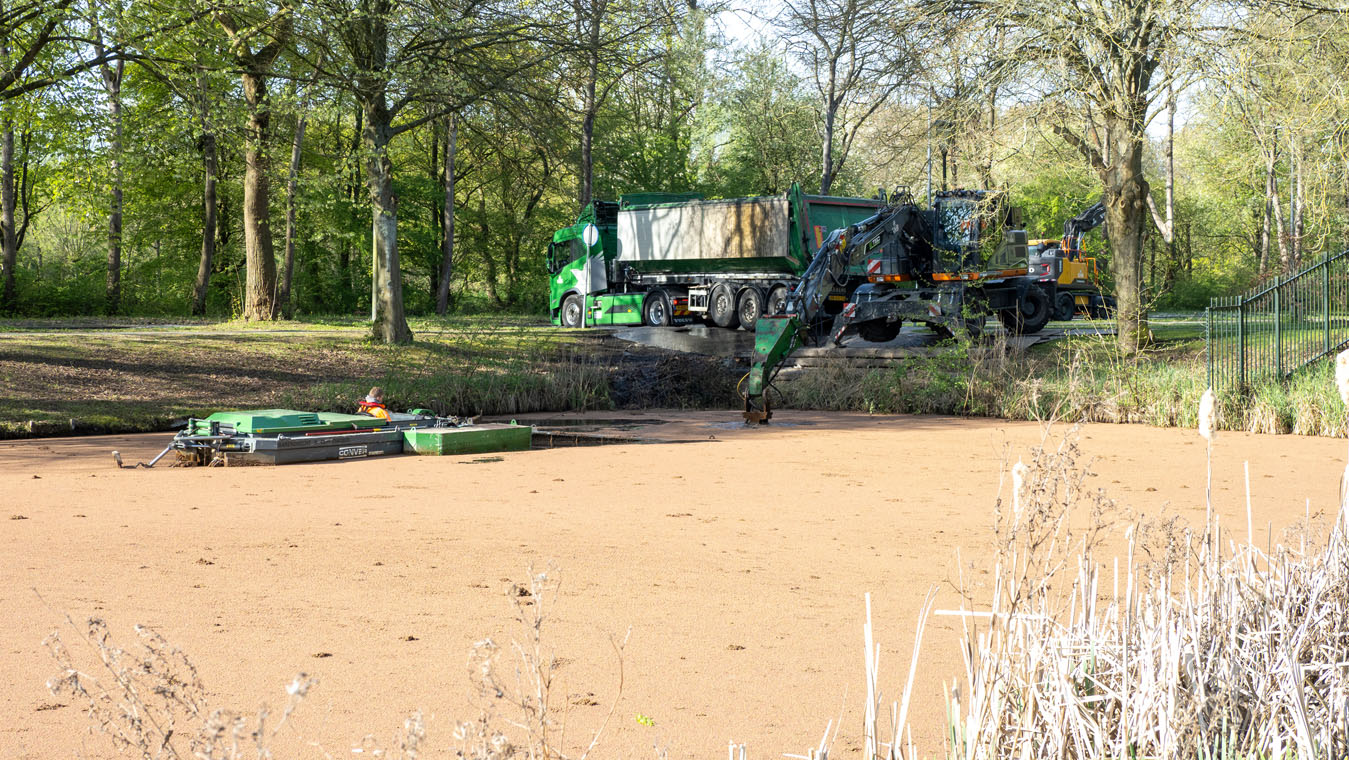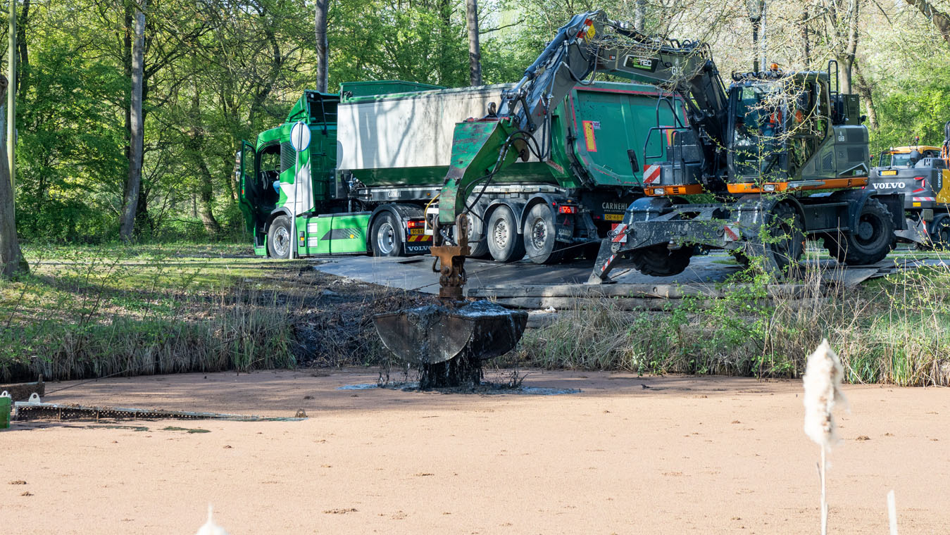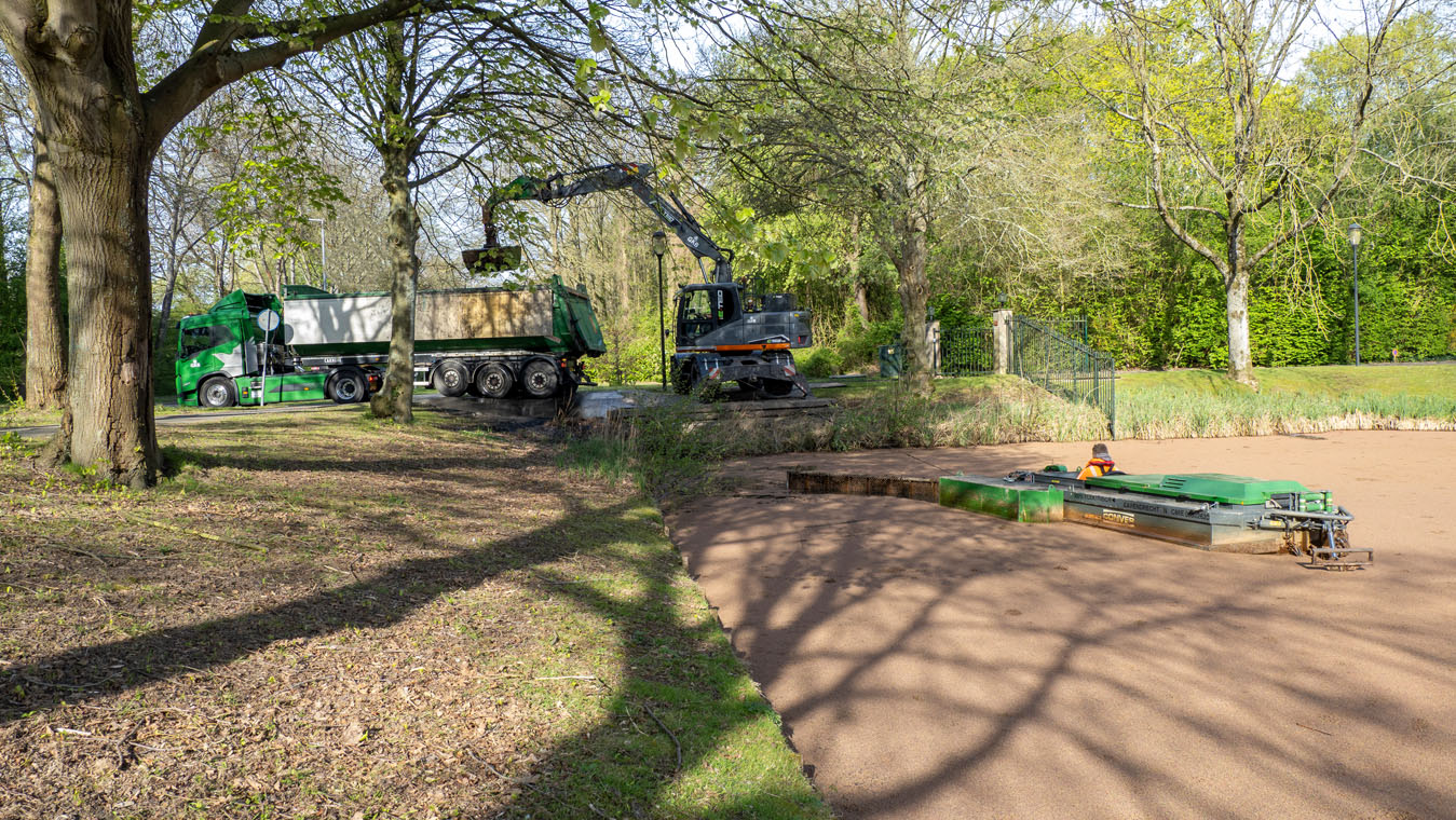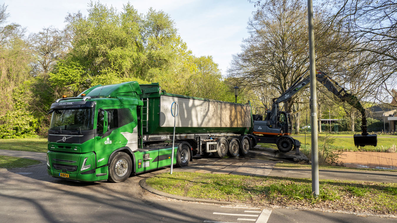 In de stedelijke omgeving voeren wij baggerwerken uit. Dit wordt gedaan met ons elektrisch materieel. Fluisterstil schuift de baggerboot de singels schoon. Met een stille kraan wordt het in de vrachtwagen geladen. Uiteindelijk zoeft de elektrische vrachtwagen met bagger de straat uit. Zo houden wij zonder uitstoot op het werk de watergangen schoon en op peil.
