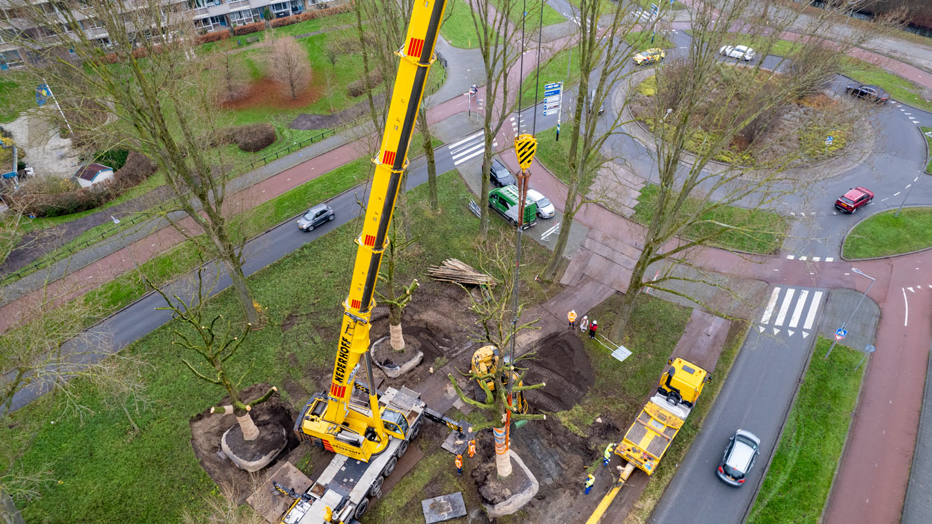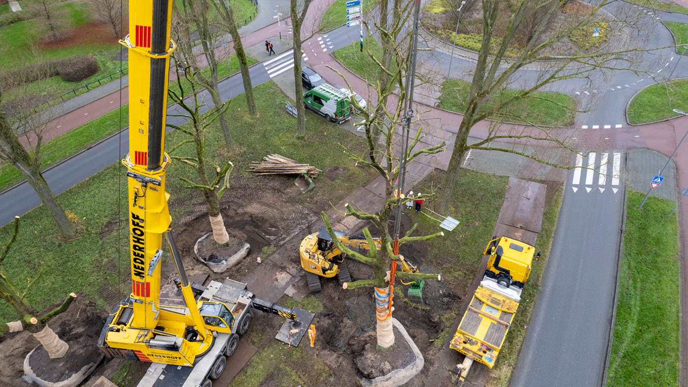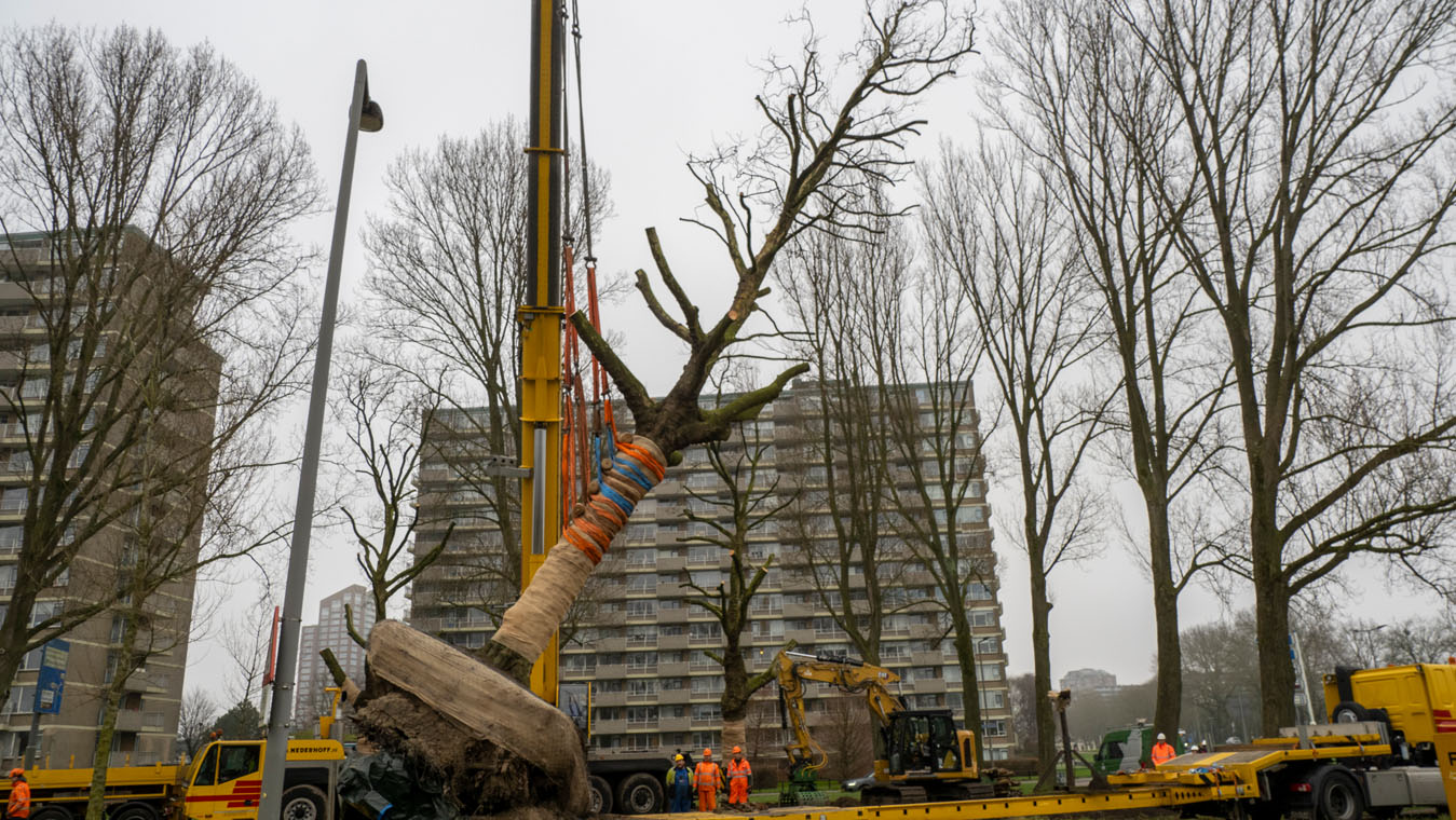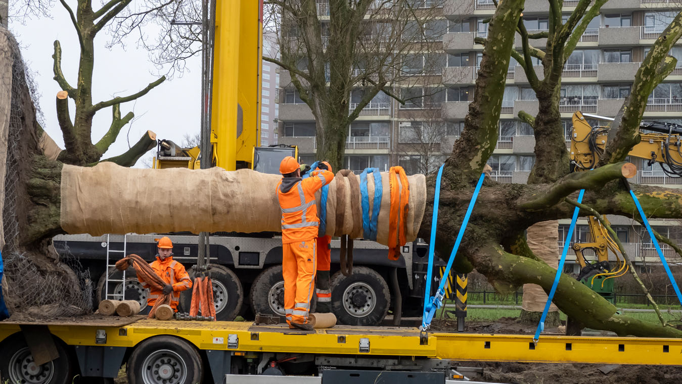 Platanen verplant naar Klein Nieuwland Rotterdam