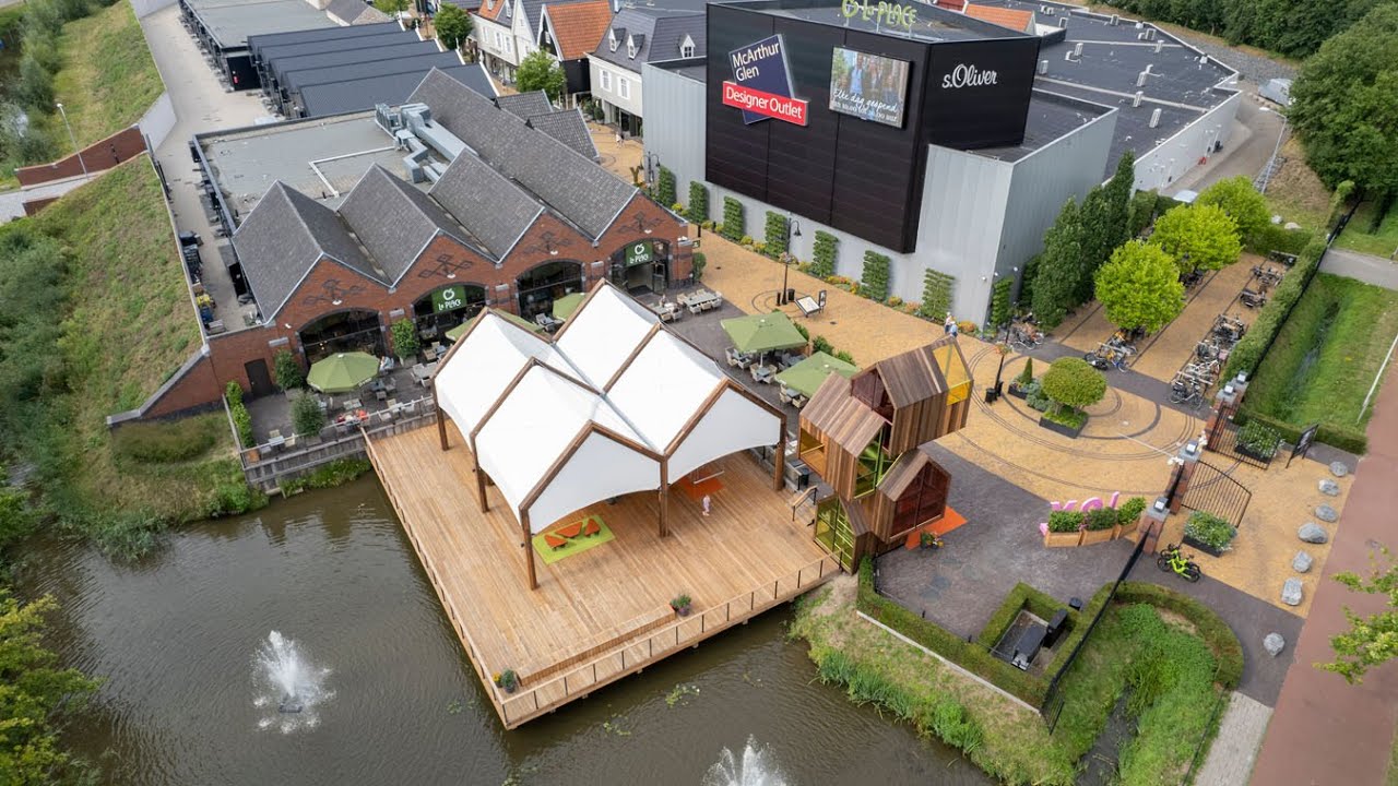 Het terras van Designer Outlet Roosendaal is voorzien van een mooie speelplek. Een onderdeel hiervan is de leuke klimtoren van houten speelhuisjes. De huisjes zijn in onze staalfabriek geprefabriceerd zodat deze snel op locatie geplaatst konden worden.