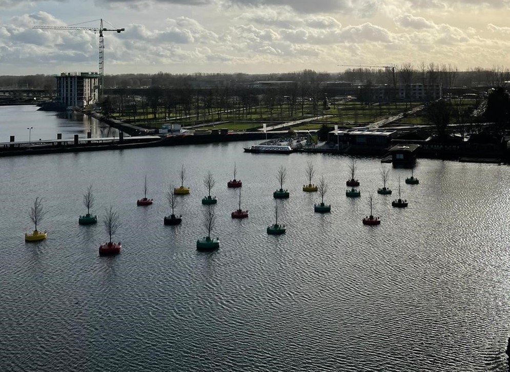 Vorige week werden de bomen opgeladen vanuit de Rotterdamse Rijnhaven. GKB heeft de boeien aangepast aan de nieuwe bestemming in de binnenwateren van Almere, terwijl boomkwekerij Van den Berk voor de bomen zelf zorgde. Afgelopen week reisden de bomen via Amsterdam naar Almere. GKB faciliteerde het transport en nam binnenvaartschepen in de hand om het kunstwerk te vervoeren. Aangekomen in het Oostvaardersdiep in Almere zijn de bomen met vrachtwagens vervoerd naar het Floriade terrein, waar ze tw water gelaten zijn.
